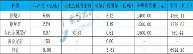表1 我國(guó)尾礦綜合利用市場(chǎng)空間