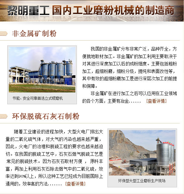 該細(xì)度范圍內(nèi)的重鈣粉加工可選擇黎明重工新專(zhuān)利產(chǎn)品歐版磨機(jī)和立式磨機(jī)等產(chǎn)品,系統(tǒng)均為干法生產(chǎn),實(shí)現(xiàn)自磨自選...