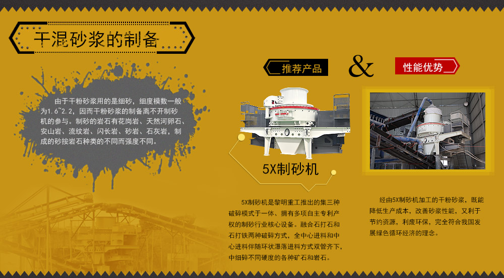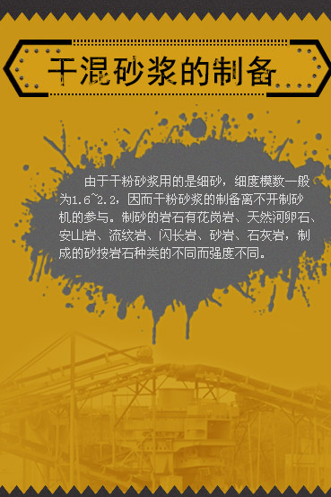 由于干粉砂漿用的是細砂,細度模數(shù)一般為1.6~2.2,因而干粉砂漿的制備離不開制砂機的參與。制砂的巖石有花崗巖、天然河卵石、安山巖、流紋巖、閃長巖、砂巖、石灰?guī)r,制成的砂按巖石種類的不同而強度不同。