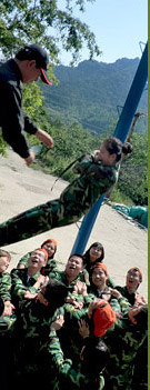 背摔臺(tái)上的勇敢和無(wú)畏,高空斷橋下的鼓勵(lì)和協(xié)作,爭(zhēng)分奪秒中集體的智慧和創(chuàng)新,畢業(yè)墻前團(tuán)隊(duì)的溝通與配合……這些拓展訓(xùn)練項(xiàng)目鍛煉了職場(chǎng)人應(yīng)有的基本素質(zhì):積極進(jìn)取的人生態(tài)度,親密無(wú)間的團(tuán)隊(duì)協(xié)作,開(kāi)放共享的良好心態(tài),用更強(qiáng)的個(gè)人執(zhí)行力凝聚起整個(gè)團(tuán)隊(duì)無(wú)限的力量。熔煉團(tuán)隊(duì),超越自我,團(tuán)隊(duì)興亡,我的責(zé)任!今日誰(shuí)與我浴血奮戰(zhàn),明天他就是我的兄弟!